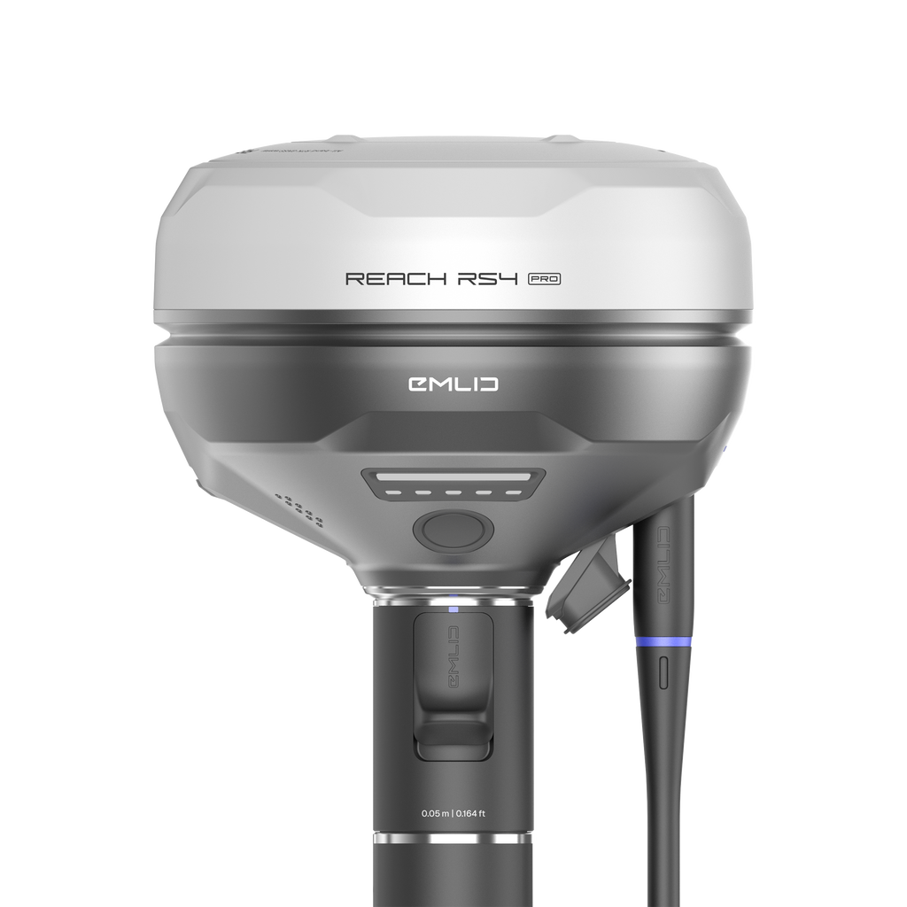 Emlid Reach RS4 Pro is an all-band RTK GNSS receiver built on RS4 and upgraded with dual Full HD cameras for AR-guided stakeout and image-based measurement. Achieve centimeter accuracy with L1/L2/L5/L6, 672 channels, and fixes in under 5 seconds, plus next-gen IMU tilt (RTK + 2 mm + 0.3 mm/°). Overlay designs on the real world, capture video, and extract coordinates from images to reach inaccessible or hazardous points. Magnesium alloy, IP68, −40 to +149 °F (−40 to +65 °C), and up to 16 hours of battery keep crews productive on complex sites.